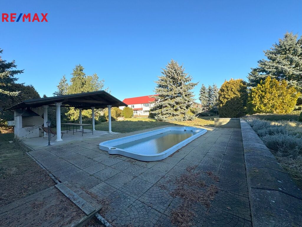 Na dům navazují hospodářské prostory včetně chlévů, dílny, společenské místnosti se sociálním zázemím a spižírnou. V zahradě se nachází menší stodola, bazén, jezírko a kryté posezení se zahradním krbem. Celý areál tak nabízí dostatek místa jak pro rodinné zázemí, tak i pro hospodaření, koníčky nebo drobné podnikání.