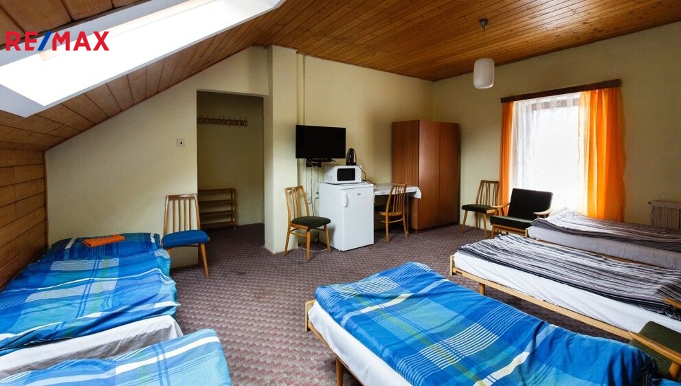 V budově s restaurací a apartmány je k dispozici 5 pokojů s vlastním soc. zařízením, (ubytovací kapacita 21 osob), v přízemí se nachází restaurace s gastro kuchyní a zázemím, místnost s výčepem (kapacita 16 osob), malý sál (30 osob) a velký sál (60-70 osob), před vchodem do restaurace je venkovní zastřešená zahrádka (30 osob).