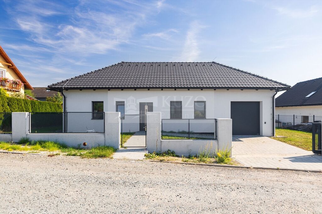 Nemalým benefitem této stavby je její profesionální provedení, zatravněná rovinatá zahrada, bazén a 3D oplocení s podezdívkou.