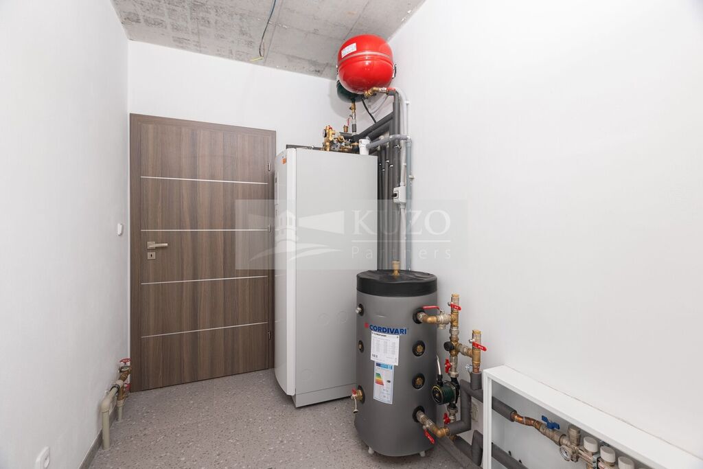 Vytápění je realizováno prostřednictvím podlahového teplovodního systému REHAU. Příprava TUV je řešena stejným způsobem jako vytápění, pomocí TČ THERMIA o výkonu 10 KW.