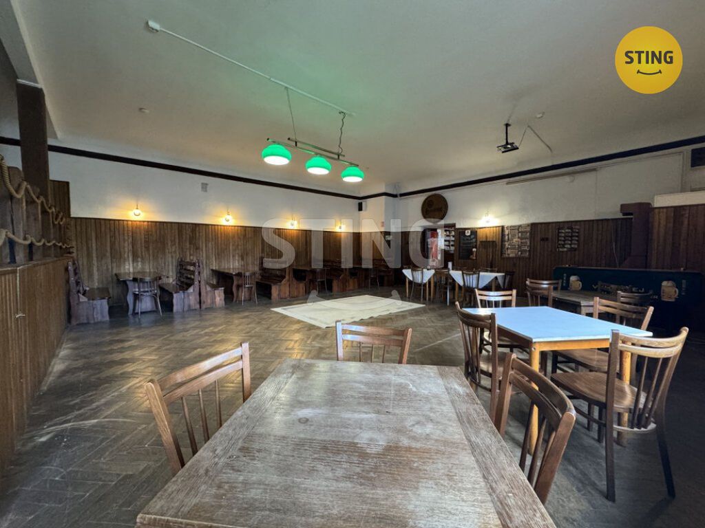 Komerční část v přízemí slouží jako zavedená hospoda s kapacitou cca 35 osob. Součástí je také velký sál pro společenské akce (min. 40 osob), menší kuchyně pro přípravu jídel, oddělená sociální zařízení, a skladové prostory. Objekt je plně funkční a umožňuje plynulé navázání na stávající provoz – bez nutnosti zásadních investic.