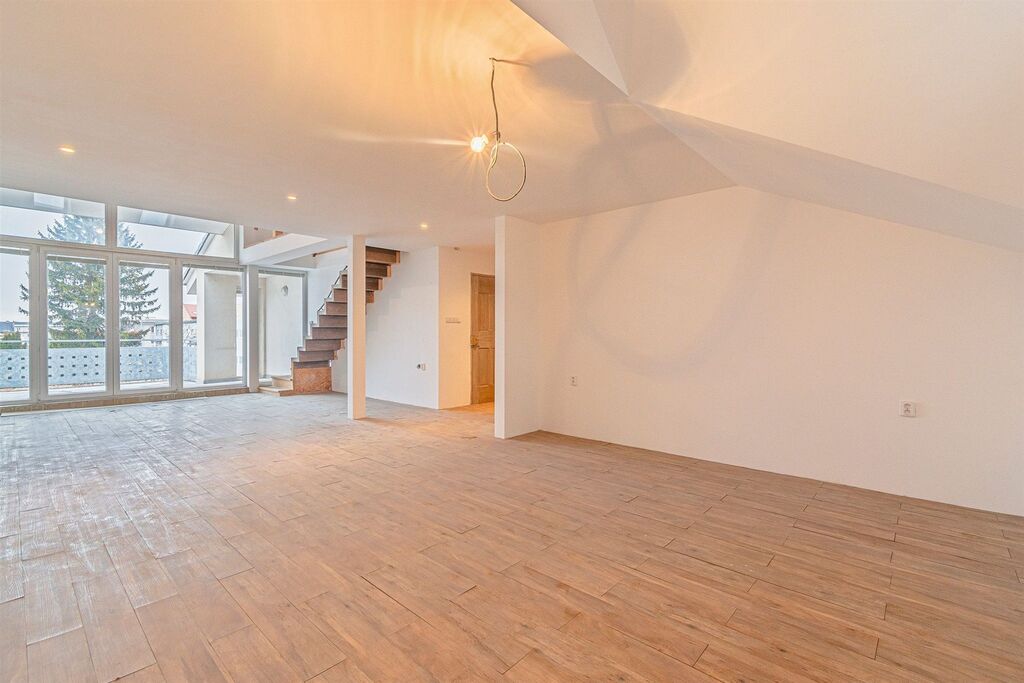Byt má, včetně terasy, přes dvě stě metrů čtverečných, což je více místa než skýtá leckterý domek. Majestátní obývací pokoj propojený s kuchyňským koutem a terasou skýtá možnosti krásných rodinných setkání, přičemž zde budou mít i ratolesti dostatek místa k hraní. Díky umístění bytu je zde zaručené soukromí.