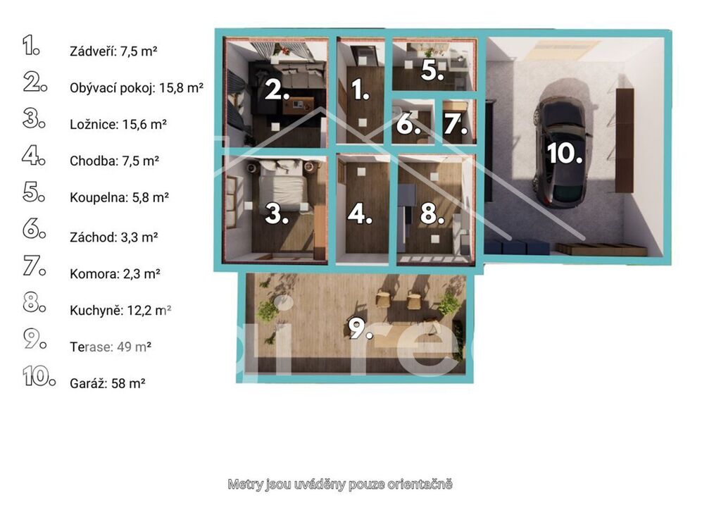 Jižní orientace – maximum slunce po celý den, ideální i pro fotovoltaiku.