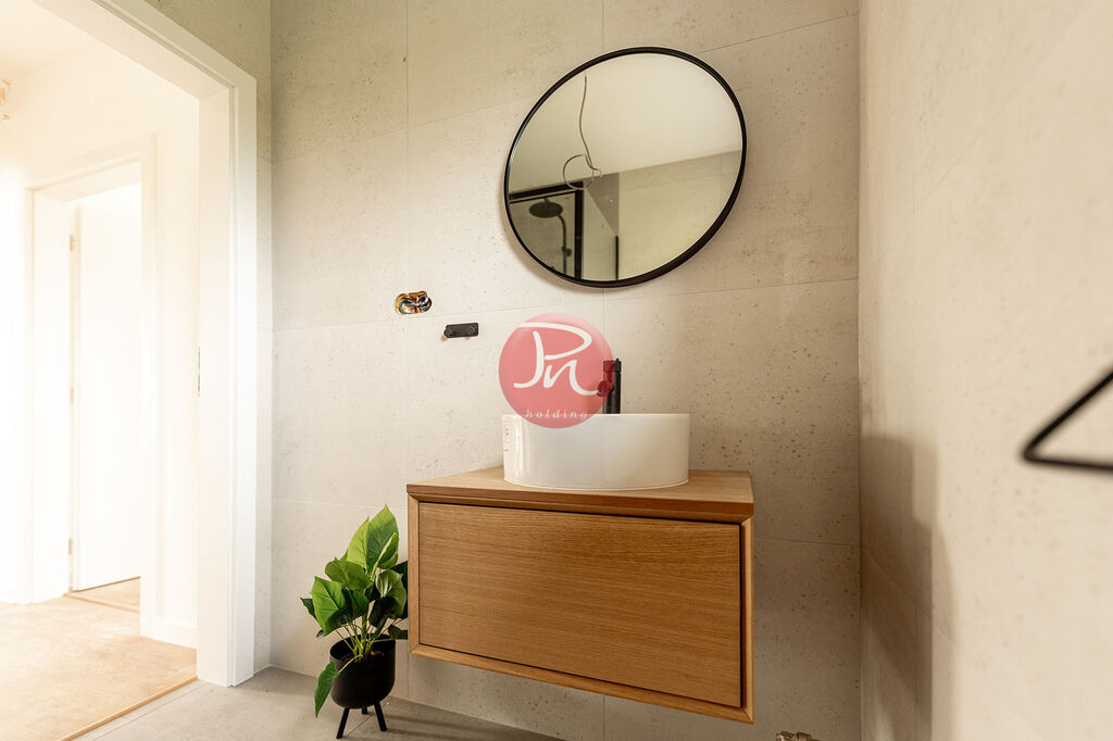 Ve spodním patře je prostorný obývací pokoj, kuchyňský kout, pokoj pro hosty, technická místnost, koupelna se sprchovým koutem a toaletou.