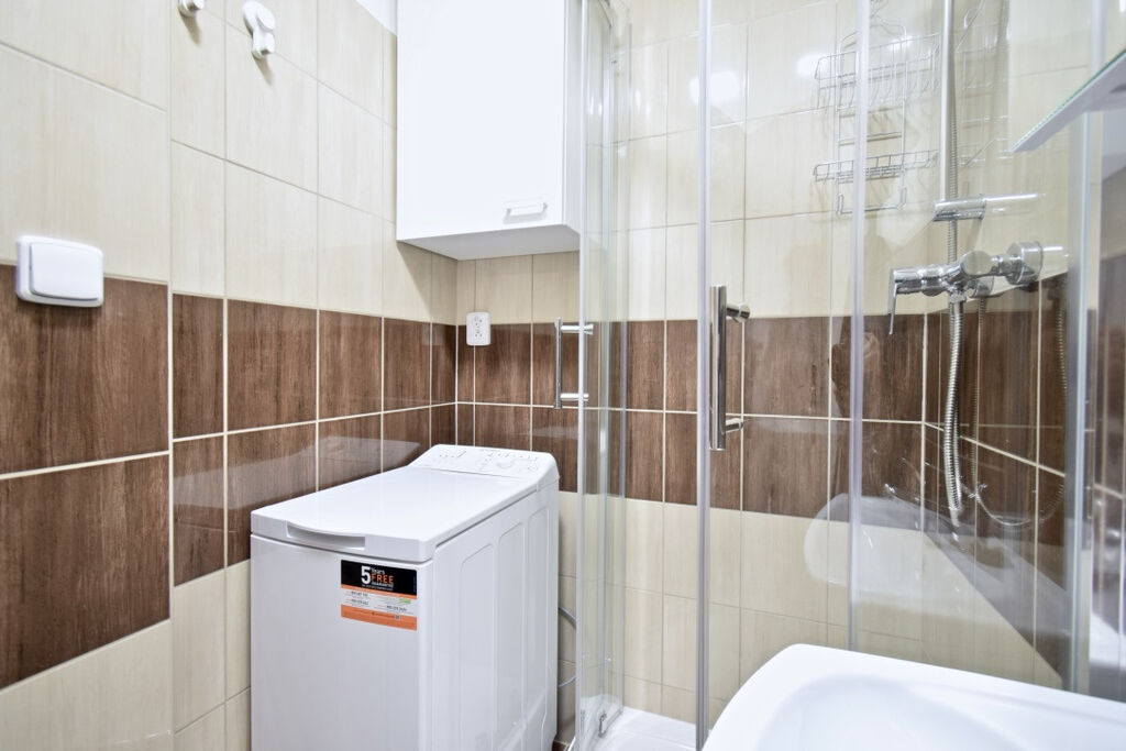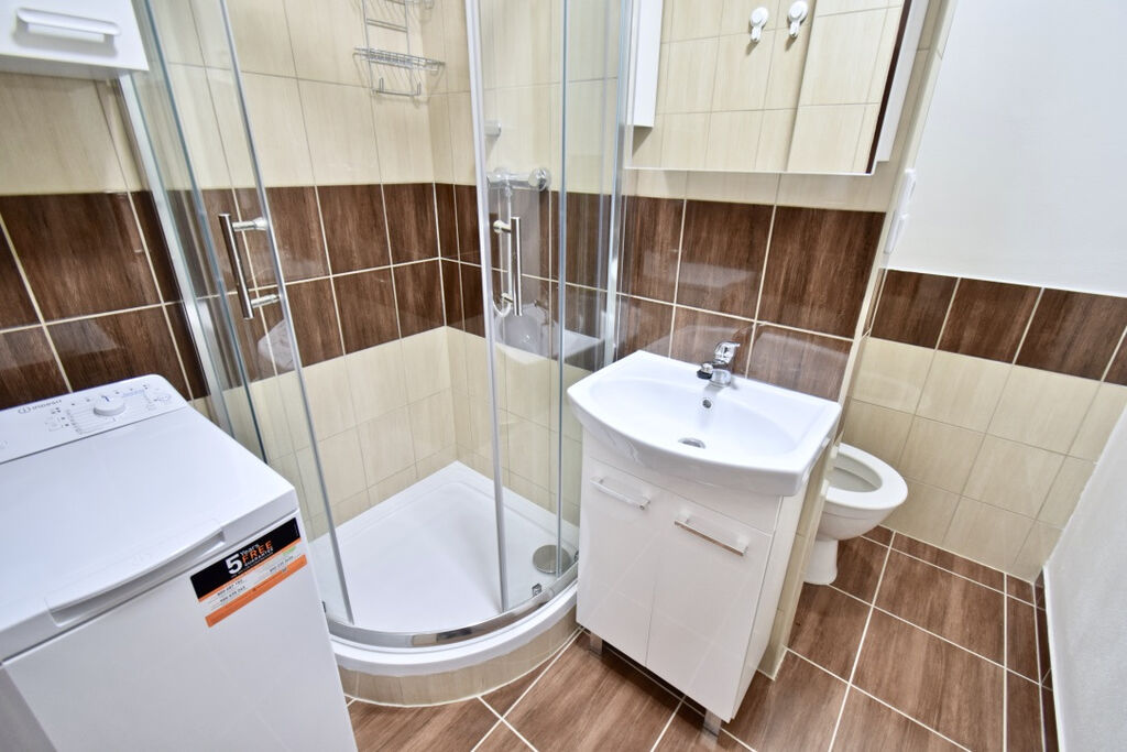 Byt se nabízí částečně vybavený. Součástí moderní kuchyňské linky je lednice, elektrická trouba, elektrický sporák a digestoř. Z pokoje se vchází na balkón. Ložnice je nezařízená. V krásné koupelně najdeme prostorný sprchový kout, umyvadlo se zrcadlem a pračku. Toaleta je oddělená. Pokoje jsou průchozí.