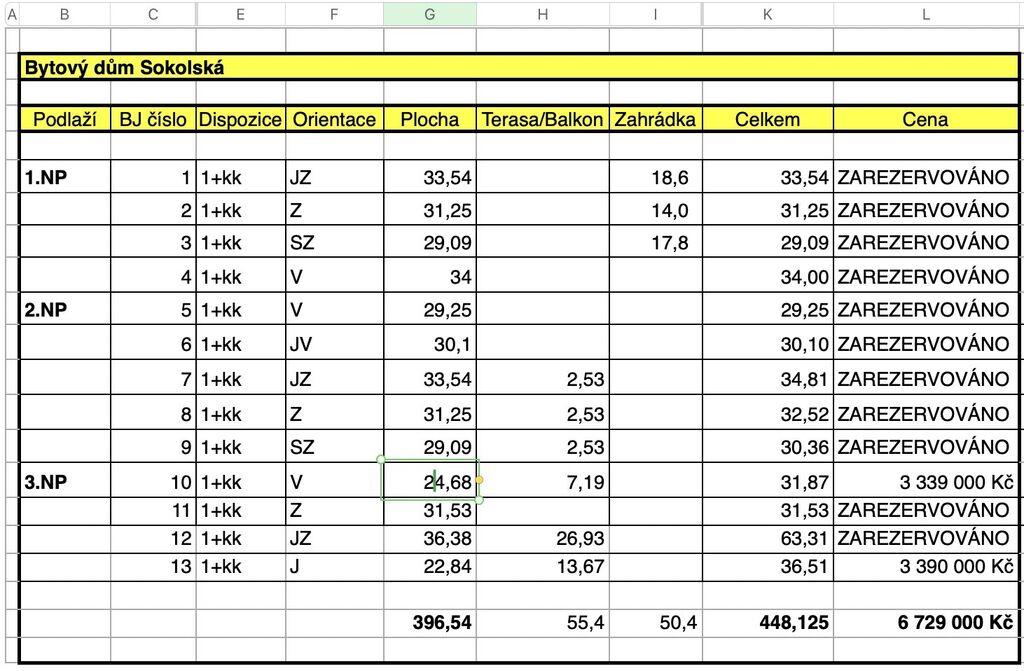 Volné dispozice zatím jsou 1+kk s terasou. Pro více informací mě neváhejte kontaktovat.