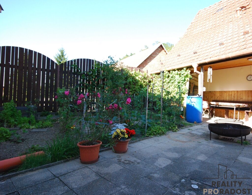 Součástí dvora je i pěkná pergola, pod kterou můžete v letních dnech odpočívat. Ze dvora se brankou dostanete do zahrady, kde je pár ovocných stromů a prostor pro pěstování vlastní zeleniny a ovoce.