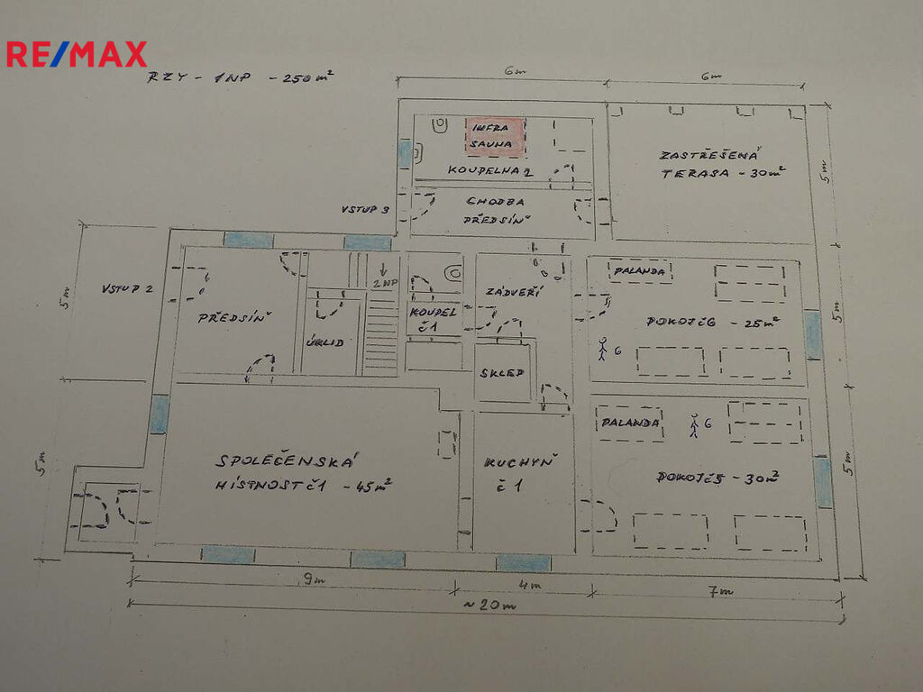 Zrekonstruované sociální zařízení je v obou podlažích, 2x v 1.NP a 1x v 2.NP. Dále se zde nacházejí dvě infrasauny.