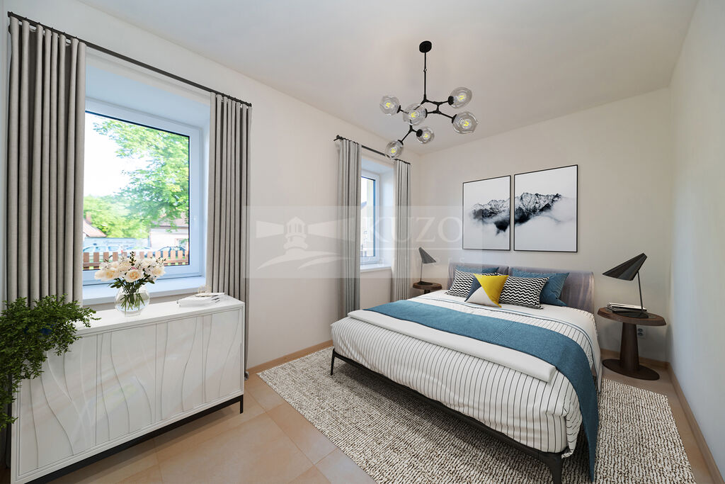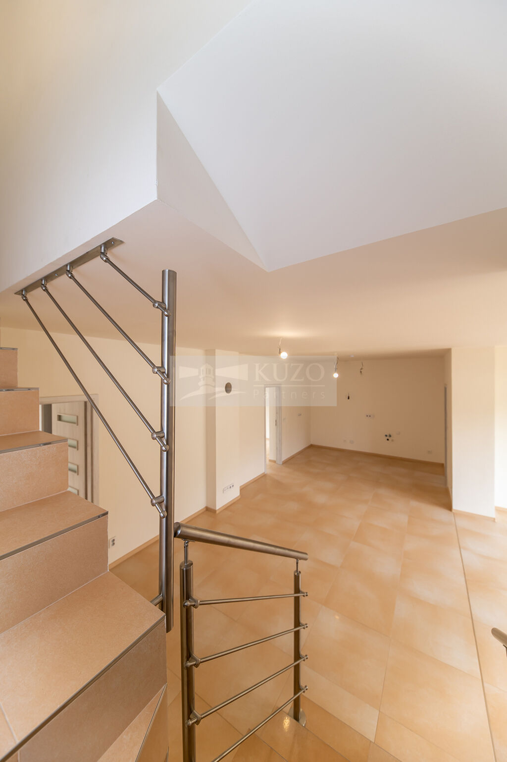 Celková plocha bytu činí 150 m² a díky vnitřnímu schodišti nabízí široké možnosti uspořádání interiéru. Byt se pyšní dvoupodlažní strukturou, kde každý člen rodiny najde své místo. Dětské pokoje jsou prostorné a nabízejí dostatek místa pro hračky a školní potřeby. Rodinné chvíle si můžete užít v prostorném obývacím pokoji, který je propojen s moderně vybavenou kuchyní.