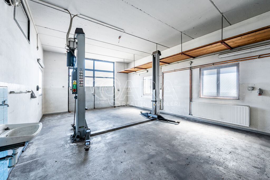 Výška stropu 5,6 metrů, montážní jáma, příruční sklad, kancelář a sociální zázemí umístěné v patře.