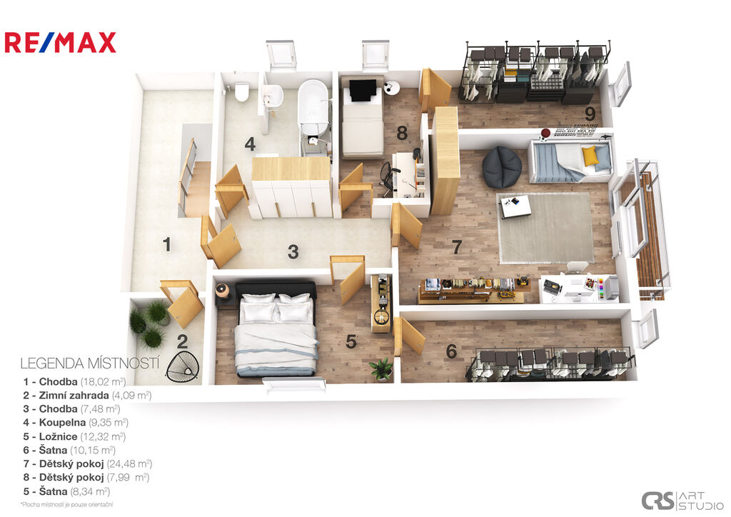 ✓ Vstupní chodba s vestavěnými úložnými prostory a samostatná šatna