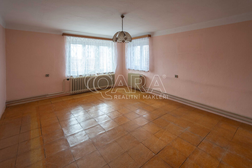 Dispozice částečně podsklepeného domu: v přízemí vstupní chodba, kuchyně, obývací pokoj, ložnice, koupelna a vstup do kotelny. V patře prostorná chodba a dva samostatné pokoje. Dům z padesátých let má dřevěná okna (dole nová), vytápění radiátory s napojením na tři roky starý kotel (na uhlí).