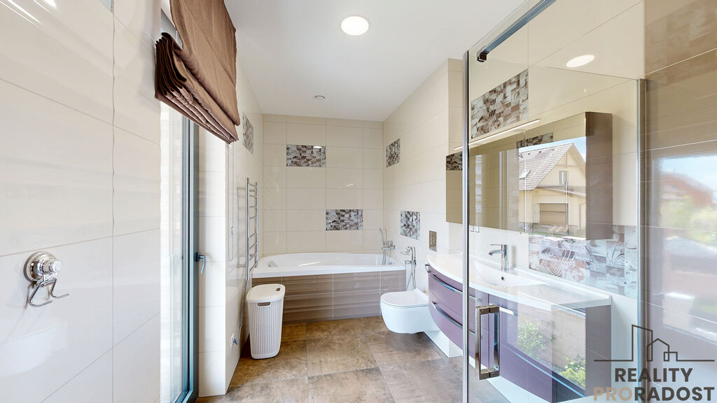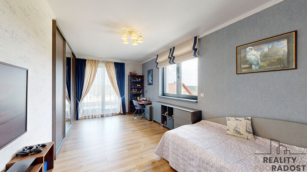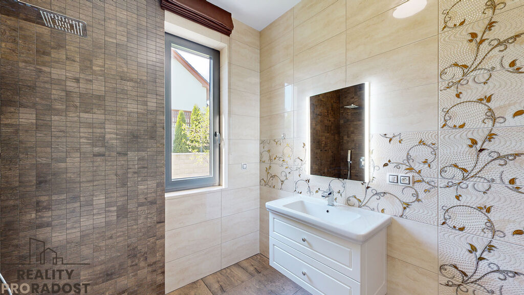 - Počet místností: 3 ložnice + 1 pokoj v přízemí + obývací pokoj s jídelnou + kuchyně + sauna + relaxační zóna + 3 koupelny + šatny