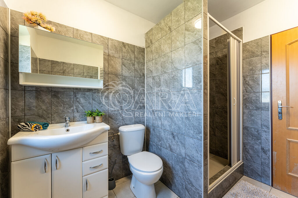 V přízemí o rozloze 114 m² najdete tři vstupy do domu, obývací pokoj (28,80 m²), pokoj (13,94 m²), kuchyň (11,04 m²), koupelnu s toaletou (3,45 m²) a technickou místnost (1,92 m²). V patře se nachází tři pokoje (13,94m², 13,25 m² a 9,30 m²), šatna, koupelna (5,20 m²), toaleta (1,82 m²) a kuchyň (23,51 m²) se vstupem na západní balkon.