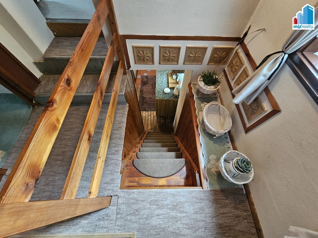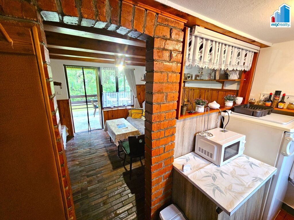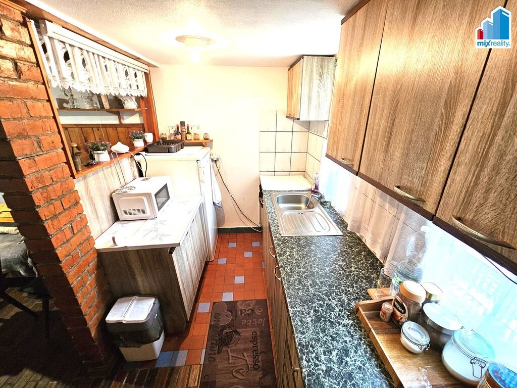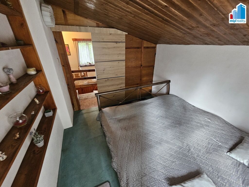 Dispozice přízemí nabízí praktickou kuchyňku, obývací pokoj ideální pro rodinná setkání, sprchový kout, samostatné WC a menší garáž. Z obývacího pokoje je vstup na terasu z masivního dřeva pro posezení a párty z přáteli.