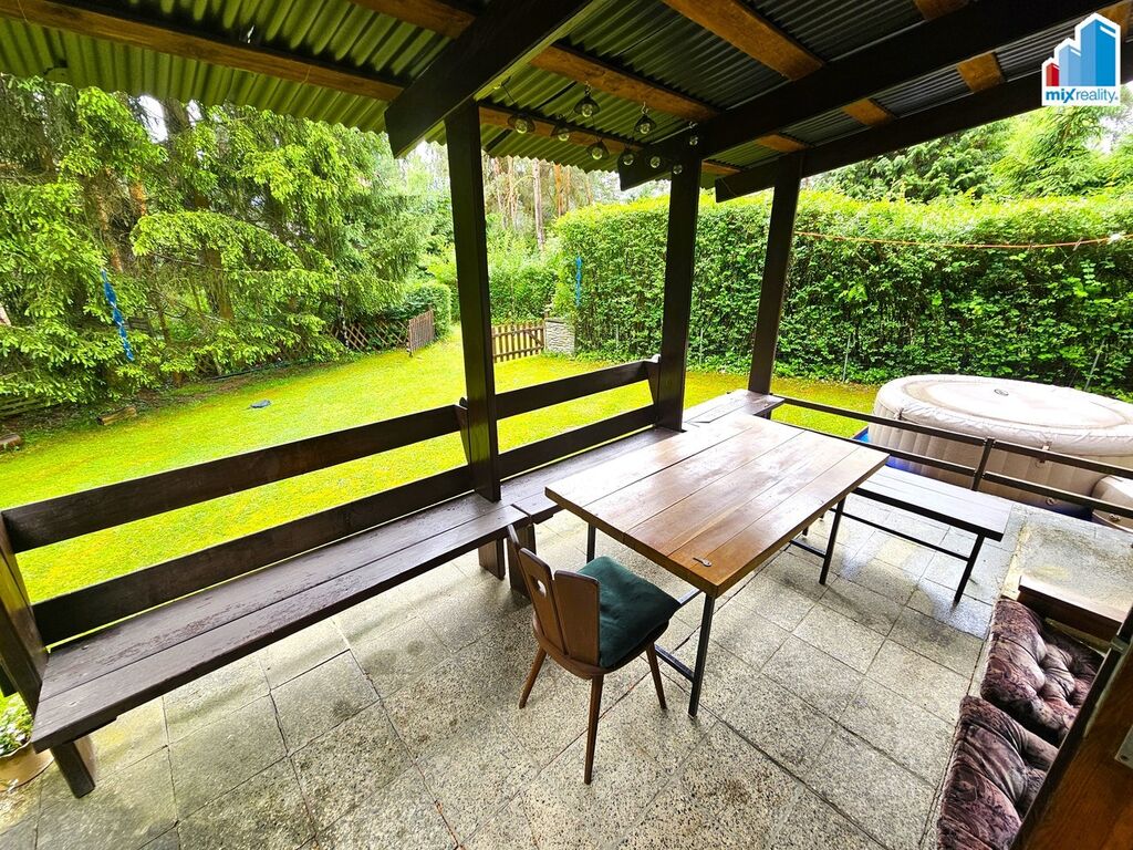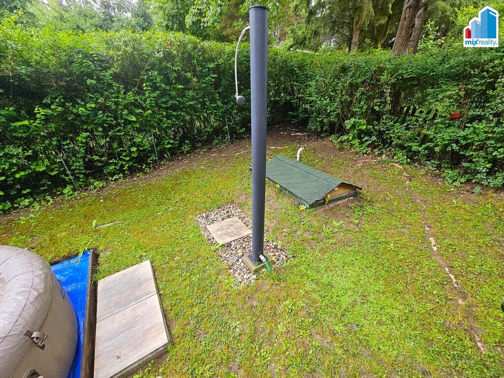 Na udržovaném pozemku si můžete užívat relax na venkovní terase, využít zahradní domek, osvěžit se ve venkovní sprše nebo si dopřát odpočinek ve vířivce.