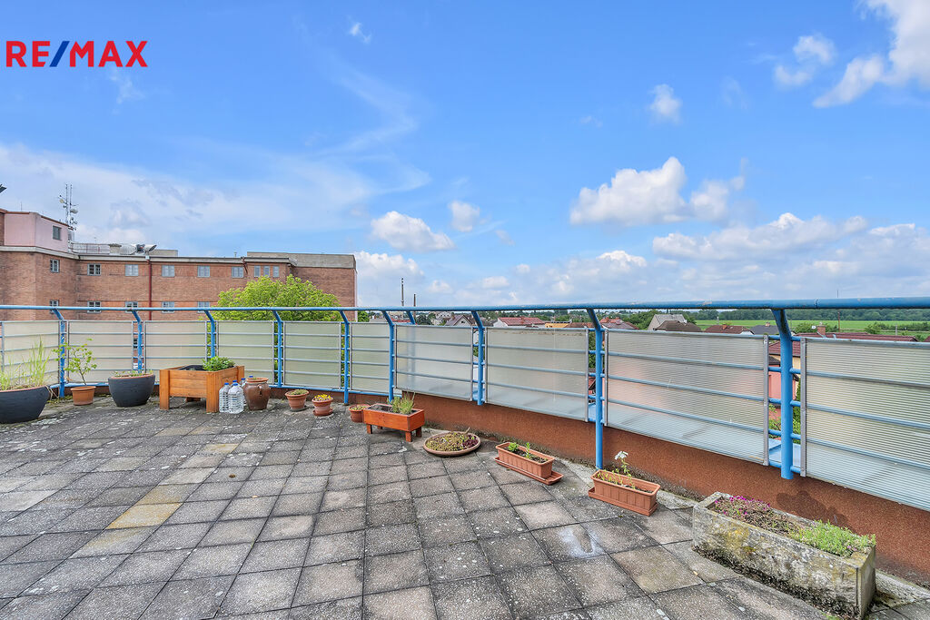 Ze zimní zahrady se dá udělat vstup na společnou střešní terasu, která skýtá možnost příjemného venkovního posezení.