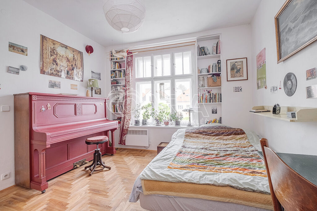 V druhém patře je k dispozici byt 2+kk (43 m2) – tento je aktuálně využíván jako ateliér, dále menší obytná garsonka (20 m2), čerstvě rekonstruovaný byt 2+kk s balkonem (50 m2), a dále jeden samostatný pokoj s příslušenstvím (11 m2).