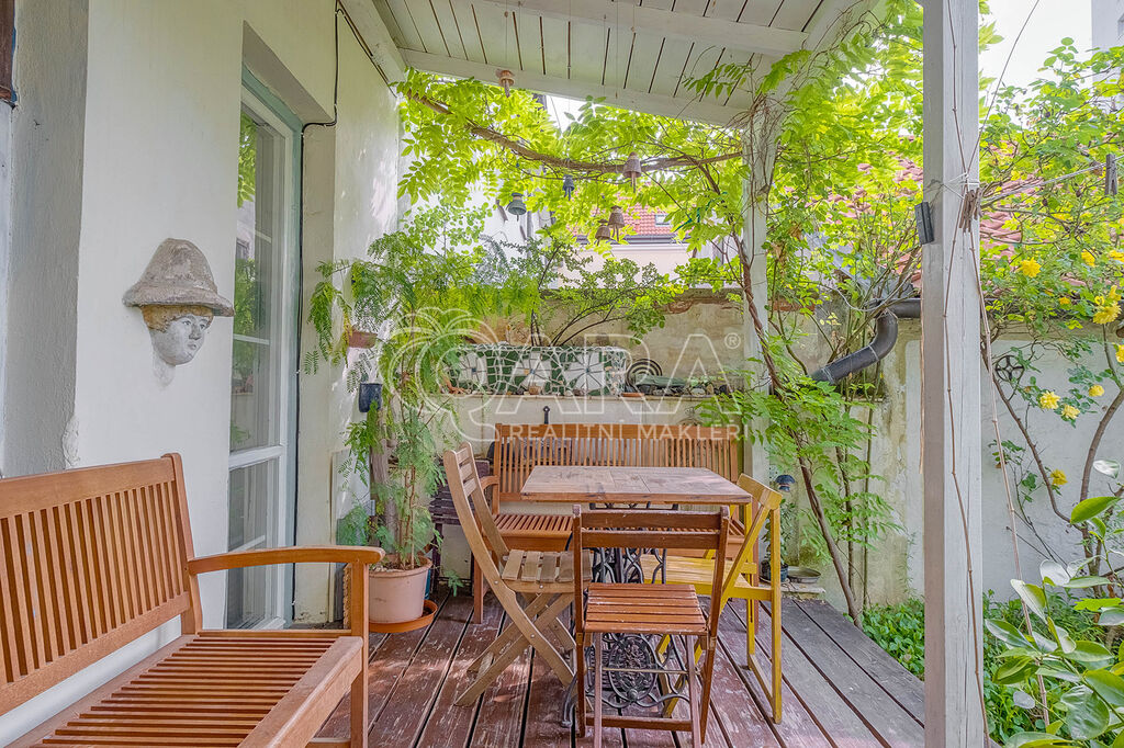 Velkým bonusem pro tuto nemovitost je navazující zahrada o celkové ploše 630 m2 přístupná z ulice Fričova, která může mít multifunkční využití.