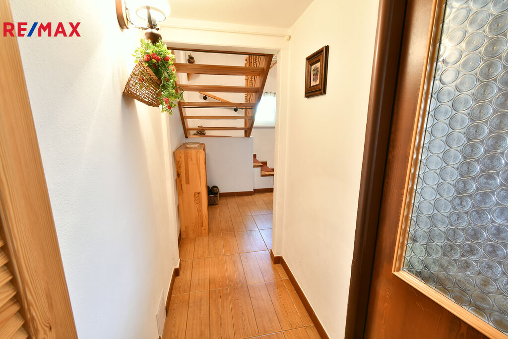V přízemí se nachází předsíň, jídelna s kuchyňským koutem, obývací pokoj, technická místnost, chodba s úložným prostorem v mezipatře a koupelna s WC. Do 1. patra vede dřevěné schodiště, kde najdete prostornou ložnici s dvěma oddělenými prostorami a vstup na menší terasu. Další schodiště vede do sníženého podkroví, které slouží jako druhá ložnice. Půdorysy s rozměry a fotografie jsou součástí fotodokumentace.