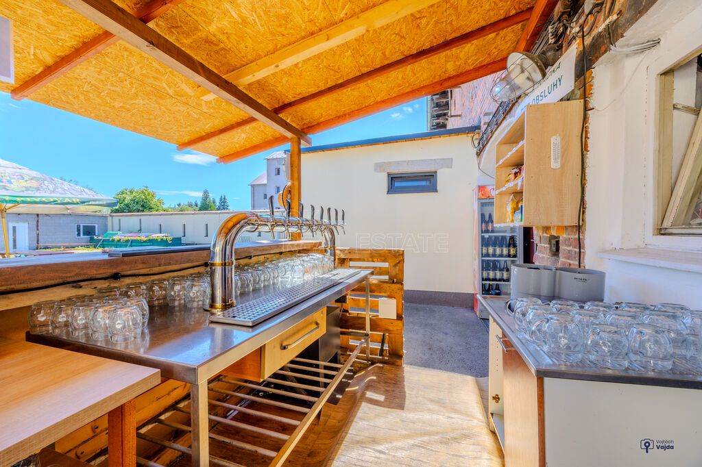 - Venkovní zahrádka s posezením pro prodej piva a občerstvení v teplých měsících