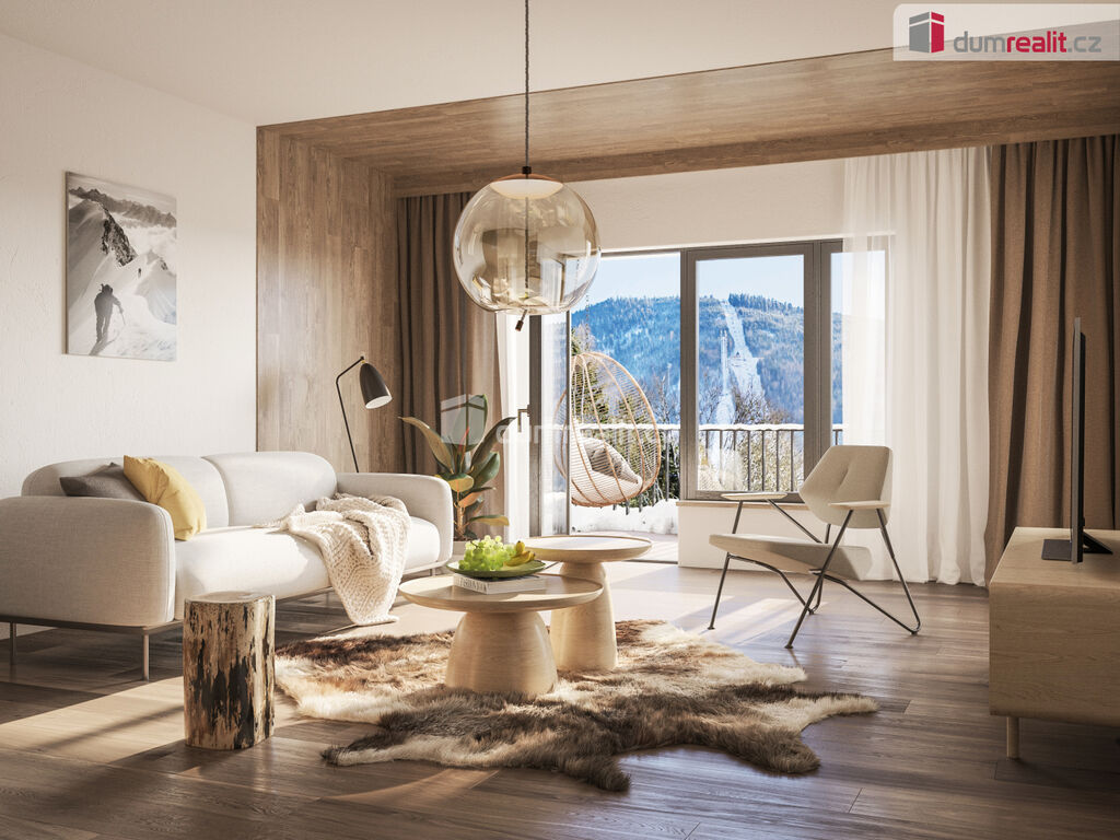 prodej nadstandardního, světlého a vzdušného mezonetového apartmánu o dispozici 4+kk a celkové užitné ploše 105 m², který se nachází v exkluzivním projektu Vitality Residence v jednom z nejvyhledávanějších horských středisek v České republice – Harrachově, v srdci západních Krkonoš.