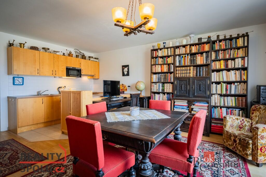 Byt má ideální polohu v prvním patře s orientací východ-západ, pohledu z balkonu vévodí silueta kostela Všech svatých. Obě obytné místnosti mají maximálně využitelný tvar téměř čtverce, v každé je velké třídílné francouzské okno.