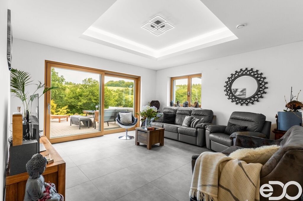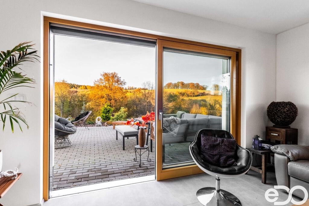 NOVÁ CENA! Pokud jste někdy hledali opravdu klidné místo k bydlení, tady ho najdete. Široko daleko nenajdete větší ticho a přitom jste jen 30 minut od Prahy. Ve Zvánovicích na vás čeká novostavba rodinného domu 5+kk o užitné ploše 162 m², obklopená nekonečnou přírodou Voděradských bučin. Klid, prostor a čistý vzduch – ideální pro každého, kdo hledá skutečné útočiště mimo městský ruch, a to v úspornější variantě s menším pozemkem. Z obývacího pokoje se otevírá krásný výhled do okolní přírody. Velké HS portály z kombinace dřeva a hliníku zajišťují nejen dostatek světla, ale i výbornou tepelnou a zvukovou izolaci. Všechna okna i dveře jsou z prvotřídních materiálů a vybavena trojskly.