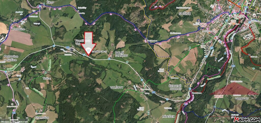 Nabízíme na prodej bývalý „Hotel Pod Svatoborem“ z r. 1935, aktuálně užívaný jako dům (užitná plocha: cca 365 m2) s ubytováním (cca 36 lůžek v 16 pokojích) a zahradou 613 m2 za domem. Velký, slunný, prostorný dům, stojící na okraji obce Františkova Ves, ležící mezi městem Sušice (5 km) a obcí Petrovice u Sušice (2 km), kde je veškerá občanská vybavenost.