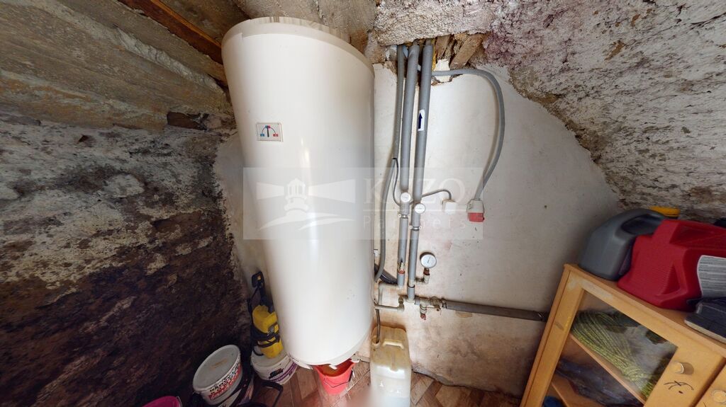 Přízemí: Praktické uspořádání zahrnuje sklad, šatnu a technickou místnost s elektrickým bojlerem. Z vnější strany domu je přístupná kotelna s kotlem na tuhá paliva (uhlí) a elektrokotlem, doplněná bojlerem pro kotel.