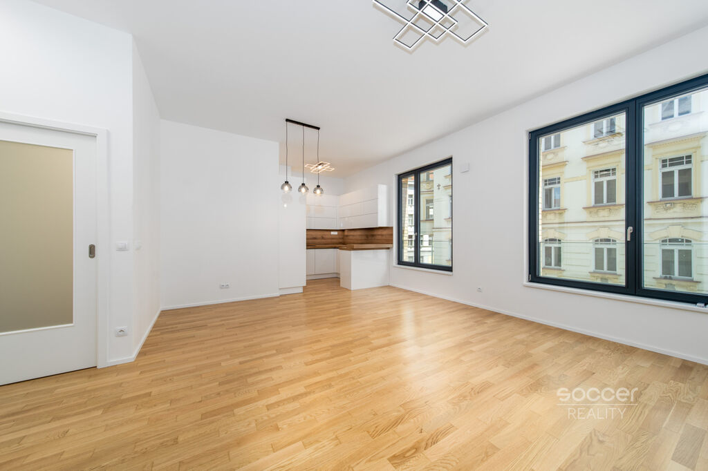 Nový luxusní byt 2+kk (62,59 m2) + sklep (11 m2) + garážové stání, v rezidenčním projektu Viktoria Center na nároží ulic Seifertova a Krásova, Praha 3. Byt je částečně zařízený, ve fotogalérii naleznete tři vizualizace, které slouží pro lepší představu, jak může byt vypadat po zařízení nábytkem.
