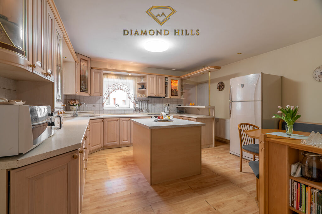 Dům o užitné ploše 291 m² (zastavěná plocha 154 m²) se nachází na rovinatém pozemku o velikosti 845 m². Nabízí osm světlých a vzdušných místností, které poskytují dostatek prostoru pro vícečlennou rodinu či vícegenerační bydlení.