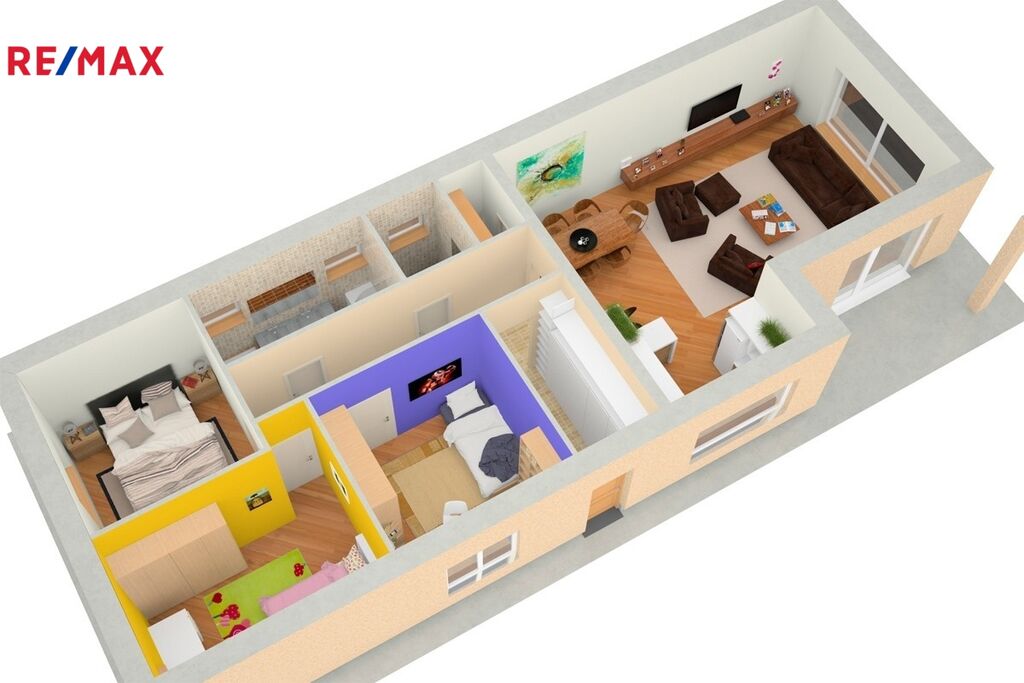 Plocha pozemku 894 m2, šířka pozemku cca 12,5 m.