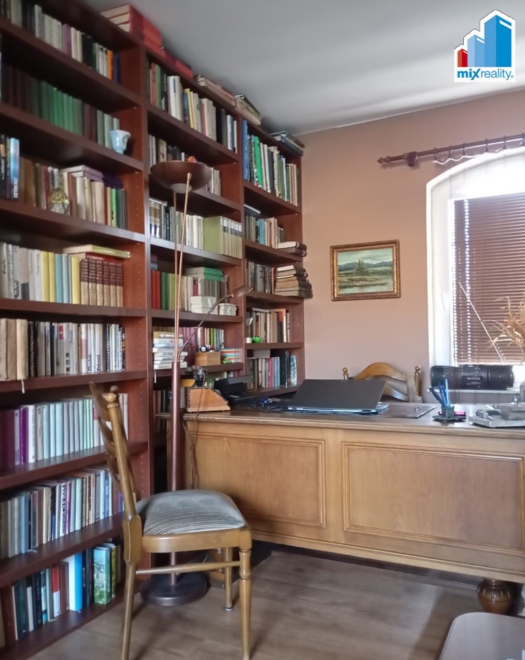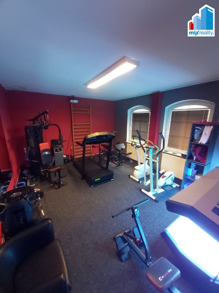 V přízemí domu se nachází technická místnost, koupelna s toaletou, pracovna, pokoj aktuálně využívaný jako tělocvična, jídelna, kuchyně, prostorný obývací pokoj a knihovna. V prvním patře najdete ložnici, dvě velké obytné místnosti, šatnu a prostornou koupelnu s toaletou, která má potenciál pro vybudování sauny. Obě koupelny jsou před rekonstrukcí, což novému majiteli umožní dokončení přesně podle vlastních představ.