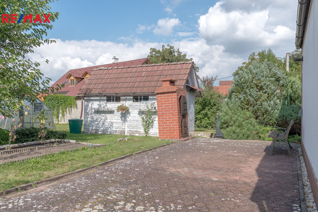 Pozemek je upravený a nabízí vše, co ocení milovníci zahradničení i odpočinku – zahradní domek pro uložení nářadí s dřevníkem, skleník pro pěstování vlastní zeleniny, voliéru, vzrostlé ovocné i okrasné keře, vlastní studnu pro zalévání zahrady.
