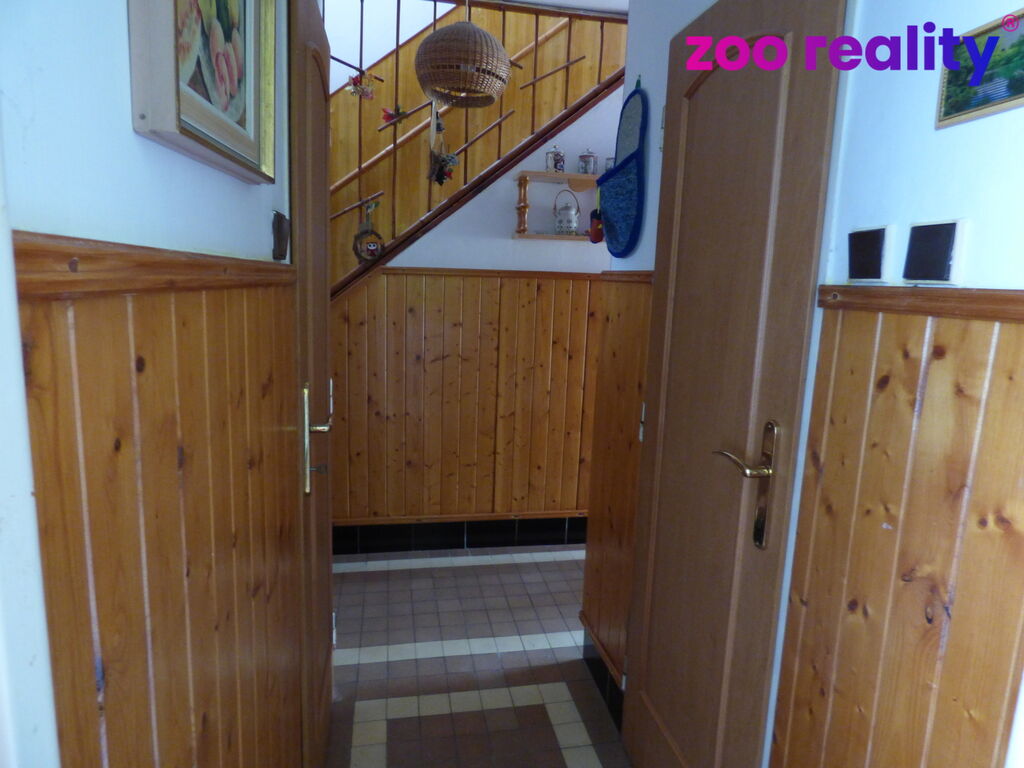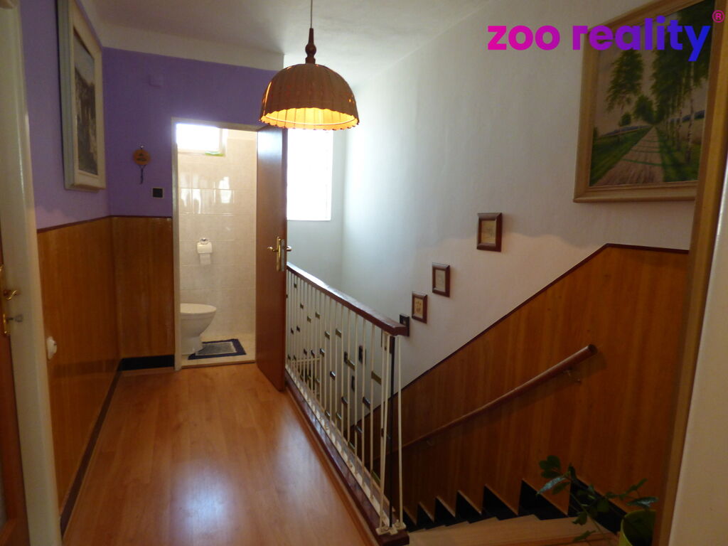 Z kuchyně je další vstup do prostorného obývacího pokoje s balkónem a schody na zahradu. Po schodech do patra je ložnice, další dva pokoje, balkón a WC. Prostorný sklep nabízí sklípek k uskladnění ovoce a zeleniny, dílnu, prádelnu s vanou a sprchovým koutem, pokoj, kuchyňku a vstup na zahradu. Na zahradě je kopaná studna, domek na nářadí, ovocné stromy, vzrostlé víno a za zahradou udržovaná obecní cesta, uzavřená bránou pro užívání pouze pro majitelé sousedních pozemků. U domu je zděná garáž.