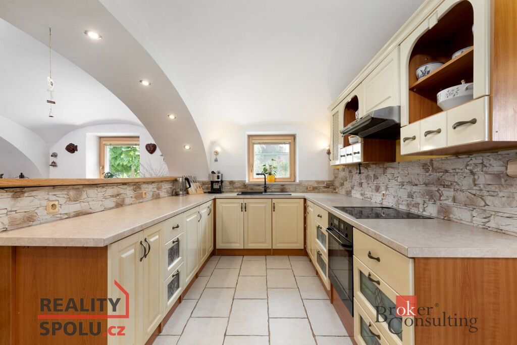 Pokud nebudete zrovna odpočívat na zahradě u kolektory vyhřívaného bazénu či hrát na schovku s dětmi mezi stromy, nabízí se ještě zahradní domek (rovněž s krbem) pro posezení s přáteli či rodinou, ale také třeba pro vaši dílnu například. Za předpokladu, že nevyužijete již tak poměrně velkou dílnu za garáží, která je součástí stavení. Do garáže se vejdou minimálně 2 velká auta a před garáž aut postavíte klidně dalších 6. A pokud by prostoru jako takového bylo stále málo, půdní prostory nabízí další možnosti. Samotné místnosti v domě jsou nadstandardně veliké.