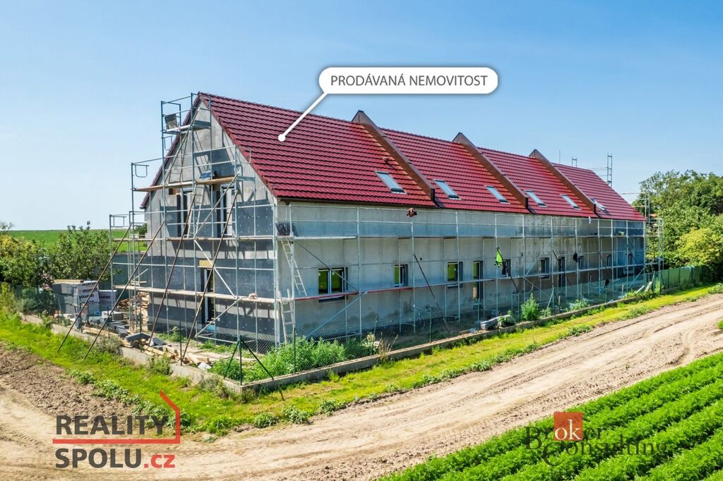 Nabízíme k prodeji moderní řadový rodinný dům 4+kk o obytné ploše 120 m² na pozemku o velikosti 335 m². Dům je aktuálně ve fázi dokončovacích prací – uvnitř probíhá instalace technologií, pokládka obkladů a dlažeb, venku se připravuje finální úprava terénu, zámková dlažba a oplocení.
