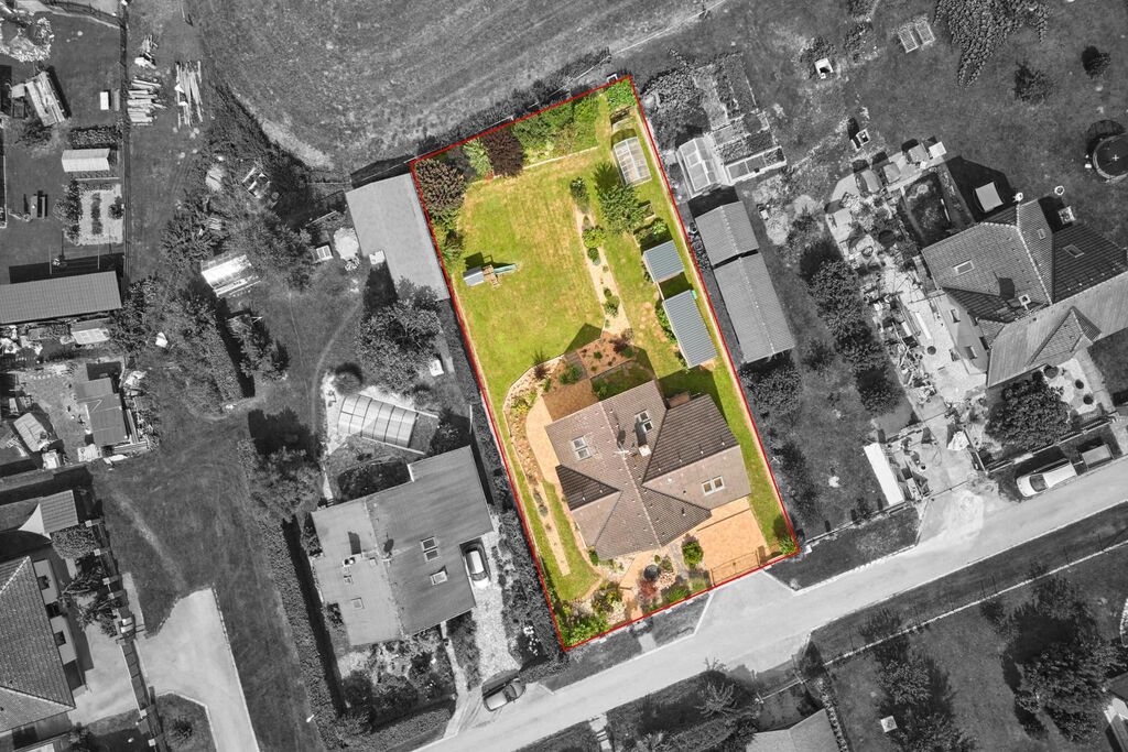 Pozemek je o celkové výměře 925 m2, je rovinatý, oplocen, v přední části s podezdívkou a kovaným plotem s vjezdovou bránou a brankou. Za domem s výhledem na Černou horu je umístěna zahrada. Tato je pečlivě udržovaná, s pěkným trávníkem a množstvím vysázených ovocných a okrasných stromů a keřů. K využití je též přístřešek, dřevěná kolna či velký skleník ad.