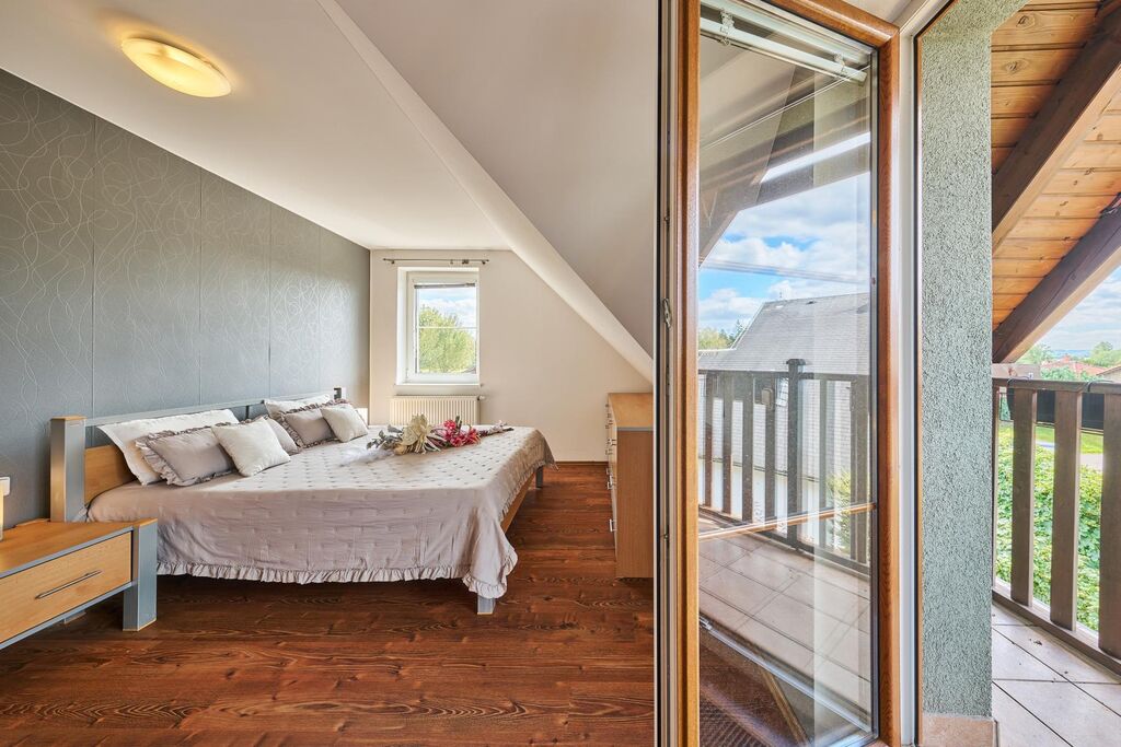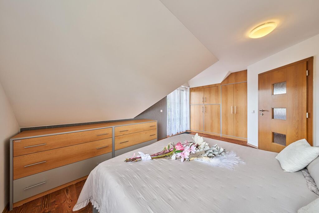 Ve 2. NP se nachází ložnice s vlastním balkonem a další 3 samostatné pokoje - výměry místností jsou od 14 do 23,5 m2. V daném podlaží je umístěno též samostatné wc a koupelna s rohovou vanou i sprchovým koutem.