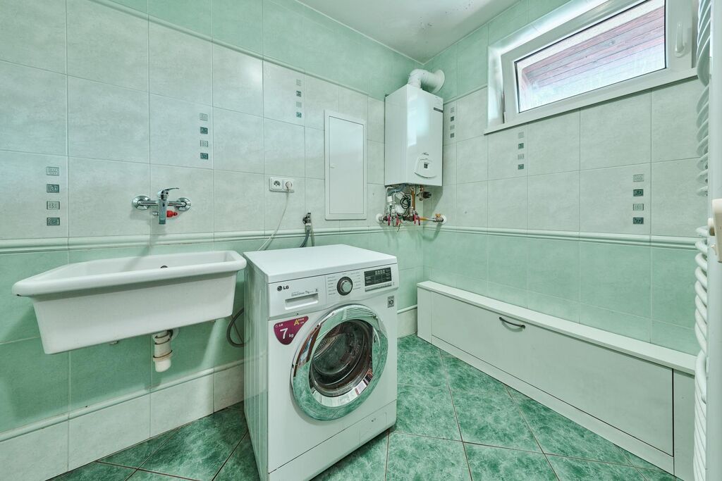Při výstavbě byly použity kvalitní materiály a zařizovací předměty - kuch. linka s množstvím pracovního a úložného prostoru a vest. spotřebiči (varná deska, el. trouba, 60cm myčka, digestoř, mikr. trouba), interiérové dveře posuvné do pouzdra, kvalitní sanitární zařízení, domácí videotelefon ad.