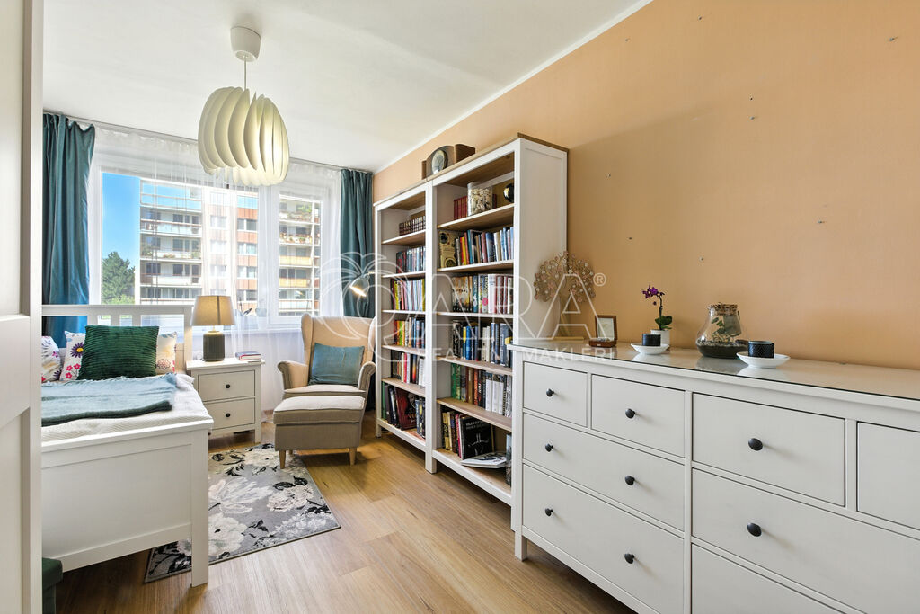 Samotný byt se nachází ve 3. patře zatepleného panelového domu s výtahem a výborně fungujícím SVJ, které má naspořenou rezervu na budoucí renovace. Dispozice bytu je velmi praktická – z prostorné chodby se dostanete do všech místností. Obývací pokoj je od kuchyně oddělen jen příčkou, což skýtá možnost jejich propojení do moderního obytného prostoru. Ložnice byly zrenovovány loni v říjnu, celý byt byl malován před dvěma lety, na podlahách najdete kombinaci kvalitního vinylu a dřevěné podlahy. Celý byt je ve velmi dobrém a udržovaném stavu – posledních 30 let jej vlastnil jediný majitel. Koupelna disponuje sprchovým koutem a toaleta je oddělená. Navíc máte k dispozici i balkon, kde si v budoucnu můžete vychutnávat příjemné chvilky.