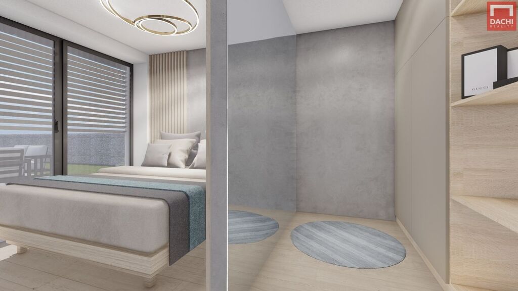 Součástí standardního vybavení jsou venkovní žaluzie, úsporné tepelné čerpadlo vzduchvoda, upravená zahrada i okolí před domem, příprava na instalaci solární elektrárny, prostorná garáž i venkovní parkovací stání. Dům je připraven k dokončení tak, aby si budoucí majitel mohl vybrat z více barevných variant podlah a obkladů podle svého vkusu. Standardní provedení je již zahrnuto v ceně a vyznačuje se vysokou kvalitou použitých materiálů i zařizovacích prvků, takže nový domov bude nejen funkční, ale i nadčasově elegantní.