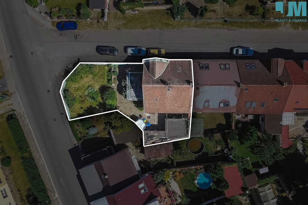 Za domem se nachází zahrada o velikosti 197 m², která může být zelenou oázou pro klidné chvíle, dětské hry nebo posezení s přáteli. Na dvoře navíc stojí garáž a dílna – místo, kde se mohou zrodit nové nápady, koníčky či rodinné projekty.