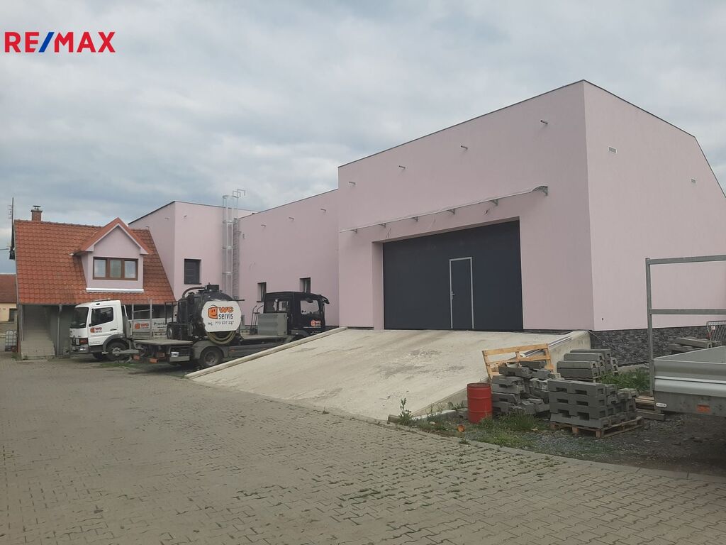 V areálu se nachází přístřešek o výměře přibližne 100 m2, dále uzavřená garáž o výměře cca 100 m2, vhodná např. jako dílna. Jedná se o objekt bývalých stavebnin, tudíž je vhodný např. na parkování aut, skladování materiálu atd. K těmto prostorům náleží zázemí s kanceláří ( vhodné např. jako dispečink) o výměře 35 m2.
