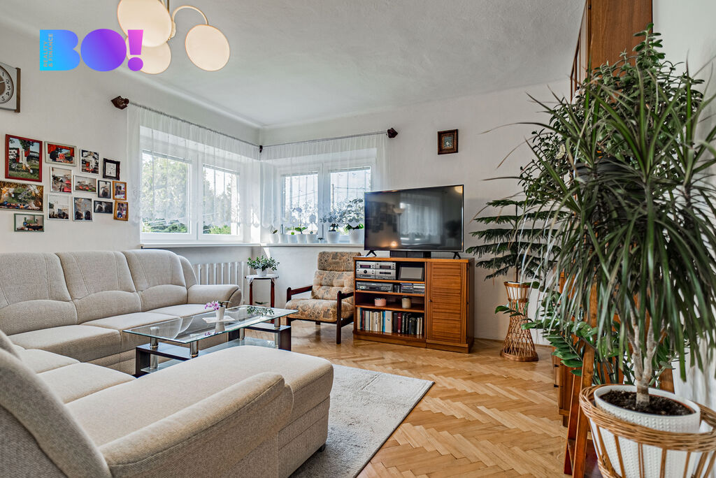 Přízemí (3+1): vstupní chodba, samostatné WC, koupelna, pokoj (např. jako kancelář či ložnice), zcela nová kuchyně se spižírnou, obývací pokoj s navazujícím dalším pokojem.