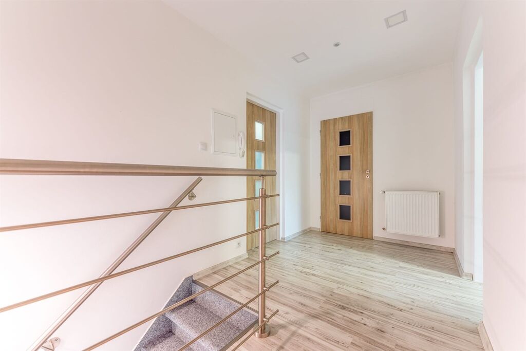 Rodinný dům je dispozičně řešen jako 5+kk a je ideální volbou pro rodinné bydlení. V přízemí domu se nachází zádveří, předsíň, prostorný obývací pokoj s jídelním koutem, kuchyň, dva pokoje, koupelna s toaletou a komora. Z obývacího pokoje je dále vstup na zastřešenou terasu a udržovanou zahradu s bazénem a zahradním domkem. V prvním patře se nachází dva pokoje a je zde k dispozici další koupelna s toaletou. Zároveň zde nalezneme přípravu na kuchyňskou linku a prostor, kde by bylo možné zrealizovat kuchyňský kout a tím zajistit možnost pro dvougenerační bydlení.