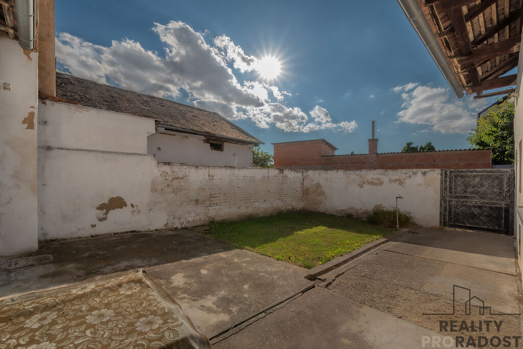 Na obytnou část navazuje místnost dříve využívána jako dílna. Za domem se nachází uzavřený dvůr, který lze přetvořit v útulnou zahrádku pro odpočinek nebo využít pro drobný chov hospodářských zvířat. Parkovaní je možné přímo před domem.