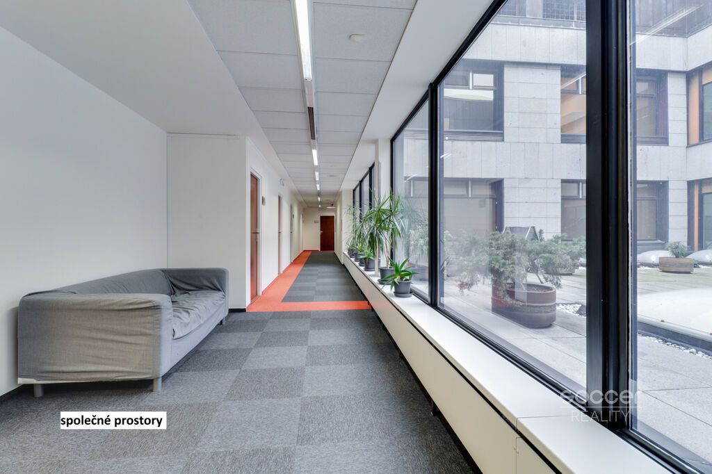 Na chodbě je k dispozici kuchyňka, sprchy, dámské i pánské WC. Dále je nájemci k dispozici nonstop ostraha, kamerový systém, centrální vytápění i chlazení, počítačové a telefonní sítě, noční trezor, příjezd nákladním autem, možnost parkování.