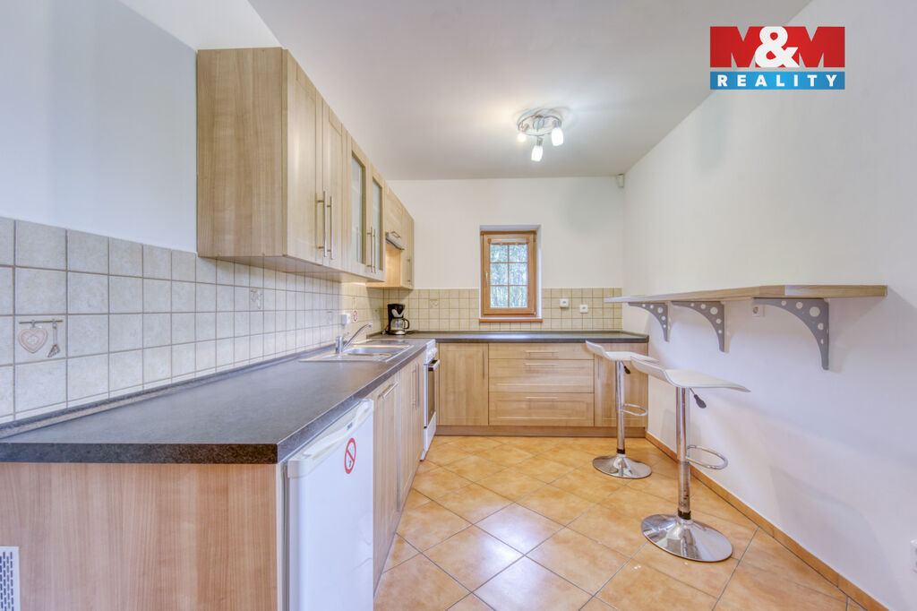 Na prodej rodinný dům v malebné obci Plešovice nedaleko Českého Krumlova. Tento dům o užitné ploše 154 m² je zasazen na polosamotě, zajišťuje klid a soukromí. Na pozemku rozloze 300 m² najdete vše potřebné pro pohodlné bydlení. Dům je rozdělen na dvě nadzemní podlaží. V přízemí se nachází vstupní chodba, prostorná kuchyně s jídelnou, obývací pokoj s přístupem na terasu, ložnice, koupelna se sprchovým koutem, samostatná toaleta a technická místnost s vlastním vchodem. První patro je rozděleno na dva apartmány, které lze pronajímat, nebo využít k dvougeneračnímu bydlení. Vytápění je zajištěno tepelným čerpadlem a elektrokotlem, teplou vodu dodává bojler. Nemovitost je ve velmi dobrém stavu a nabízí ideální příležitost pro klidné rodinné bydlení či investiční záměr.